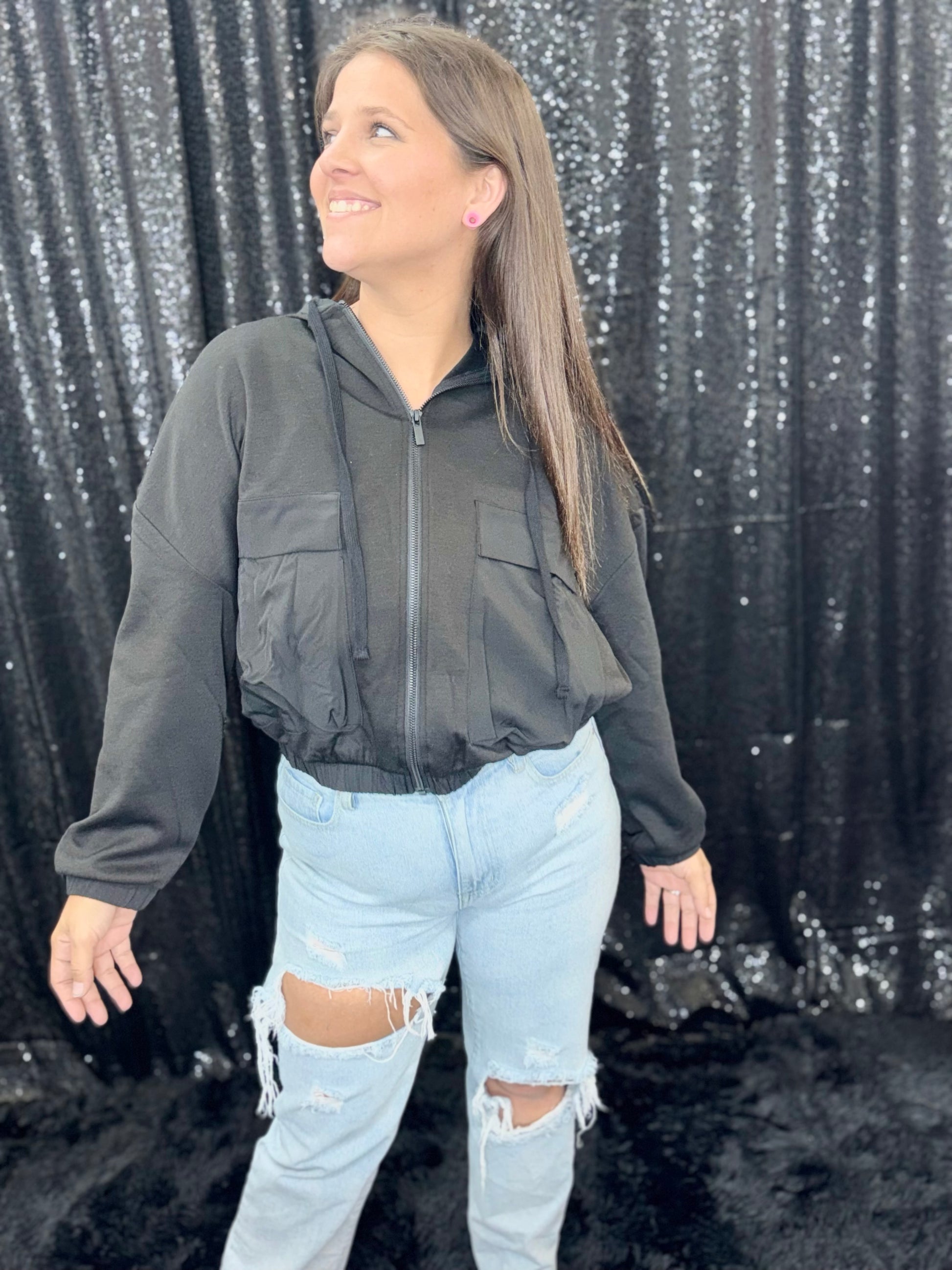 Stay cozy with this soft zip-up hoodie. Featuring a full zip and large front pockets, it's perfect for chilly weather or strolling around town. Now you can be both stylish and functional!